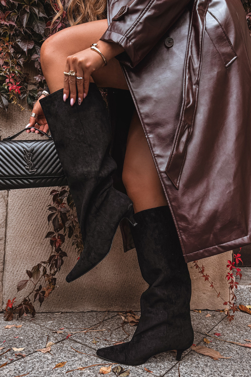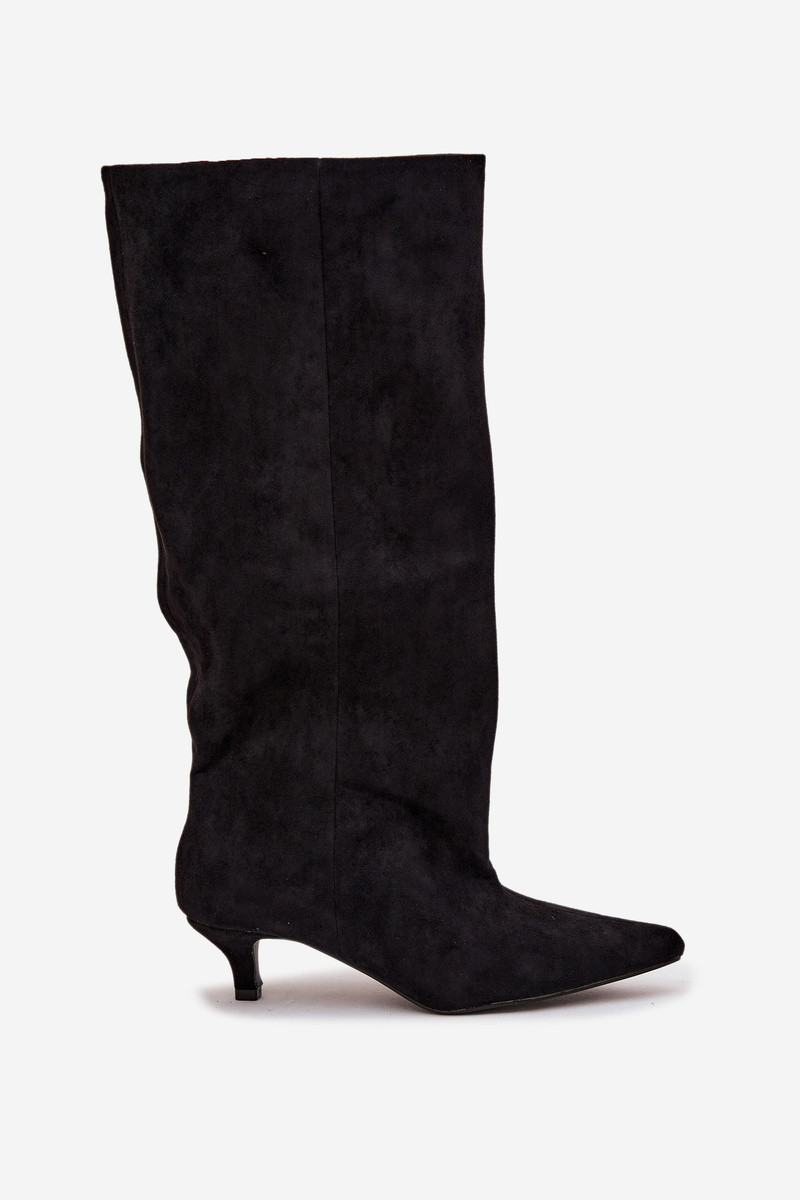 Dames lange laarzen met hakken van kunstsuède in zwart Pheona