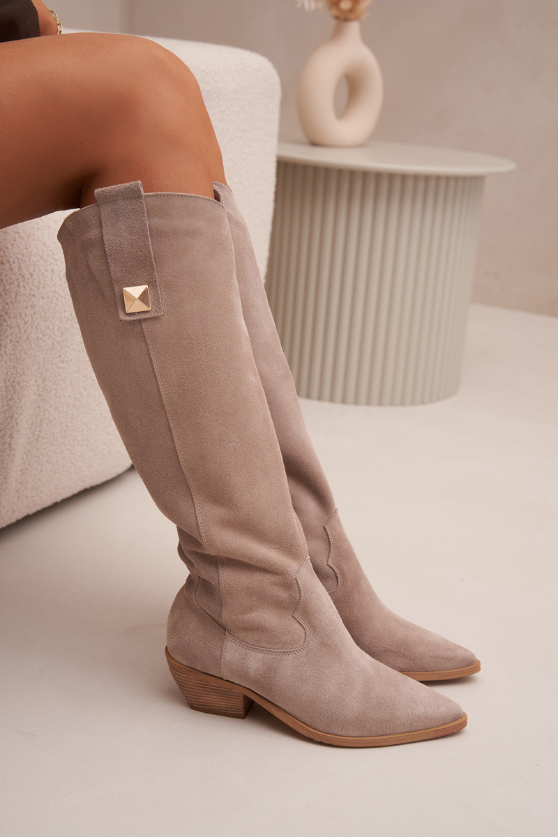 Cappuccino kleurige warme cowboystijl lange laarzen van kunstleer Zazoo 4224