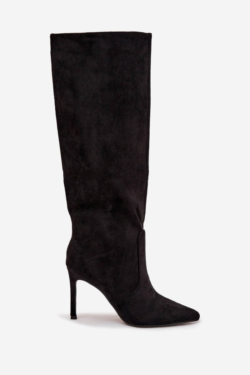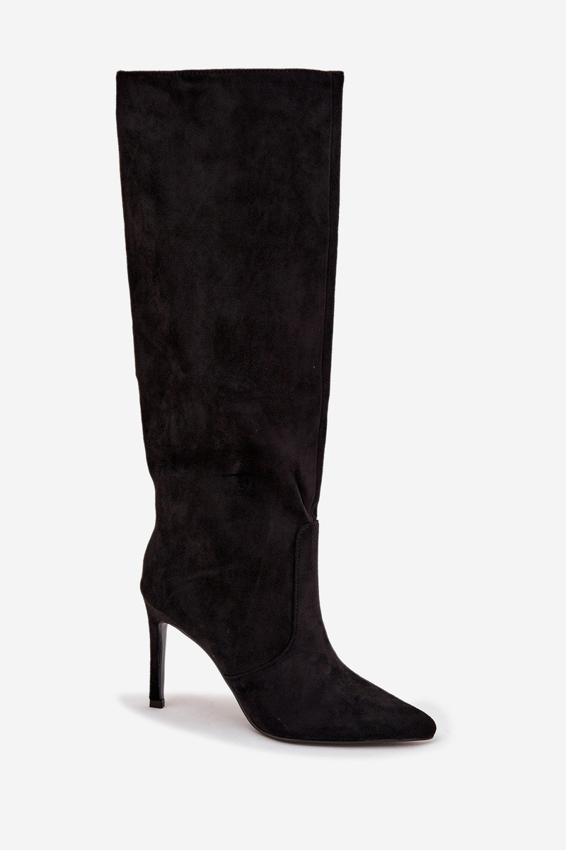 Zwarte gevoerde dameslange laarzen met dunne hakken van kunstsuède Rosavine