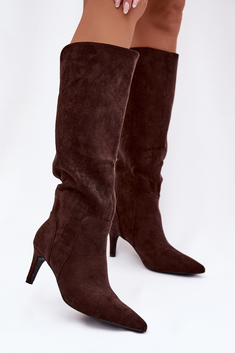 dameslaarzen met dunne hakken opInarmenvan eco-suèdeu CzekoladoIne Arelisse