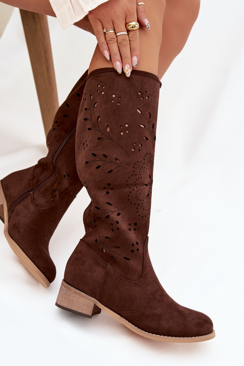 Chocoladekleurige dameslaarzen met opengewerkte elementen Helinna