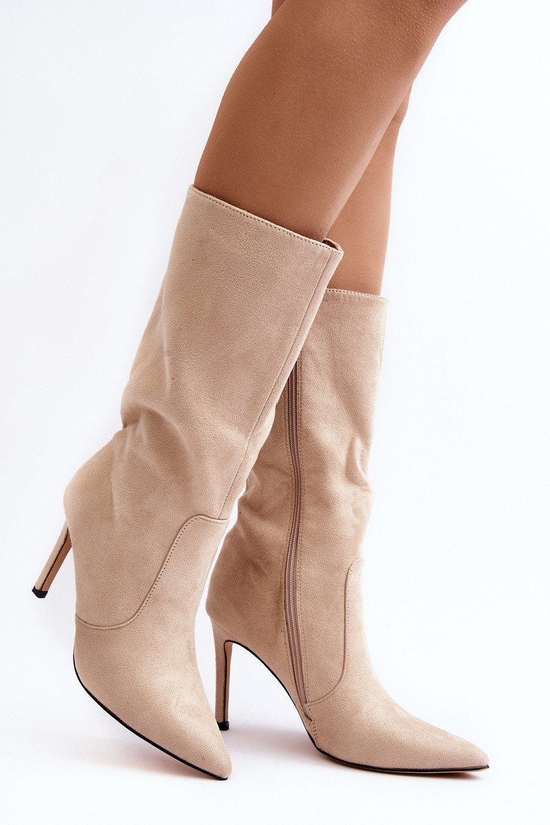 Dames laarzen HalverInege de kuit met dunne hakken beige Odetteia
