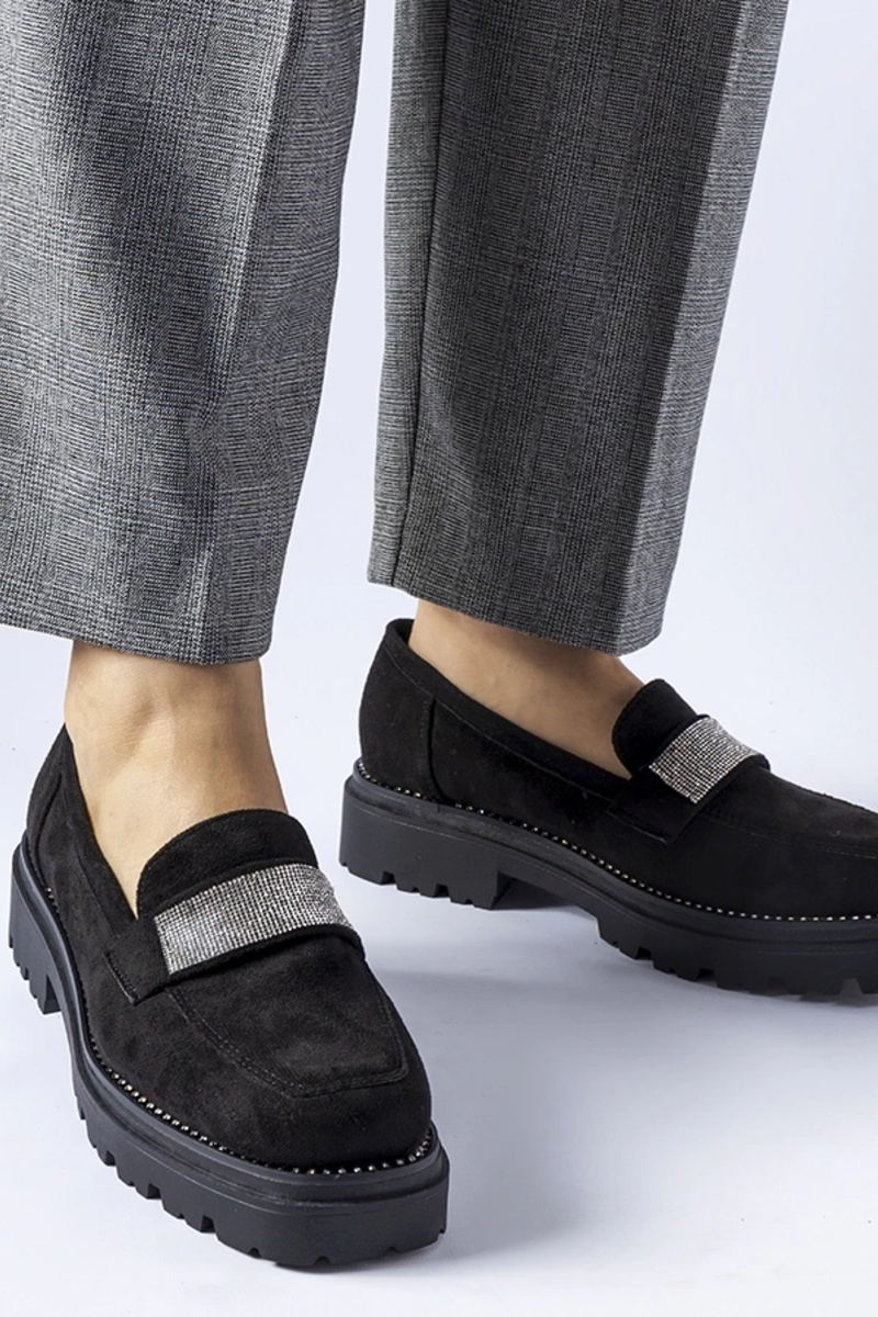 Zwarte Nicholls kunstsuede schoenen met zirconia