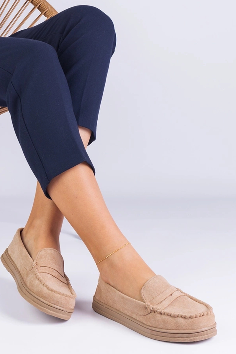Zandkleurige dames schoenen van kunstsuède Sevilia