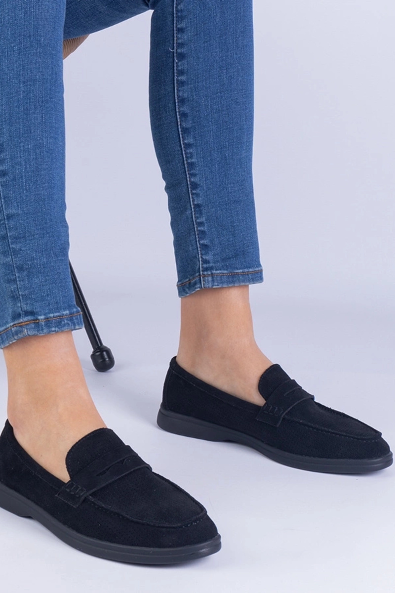 Zwarte klassieke geperforeerde mocassins van Sargossi kunstsuède