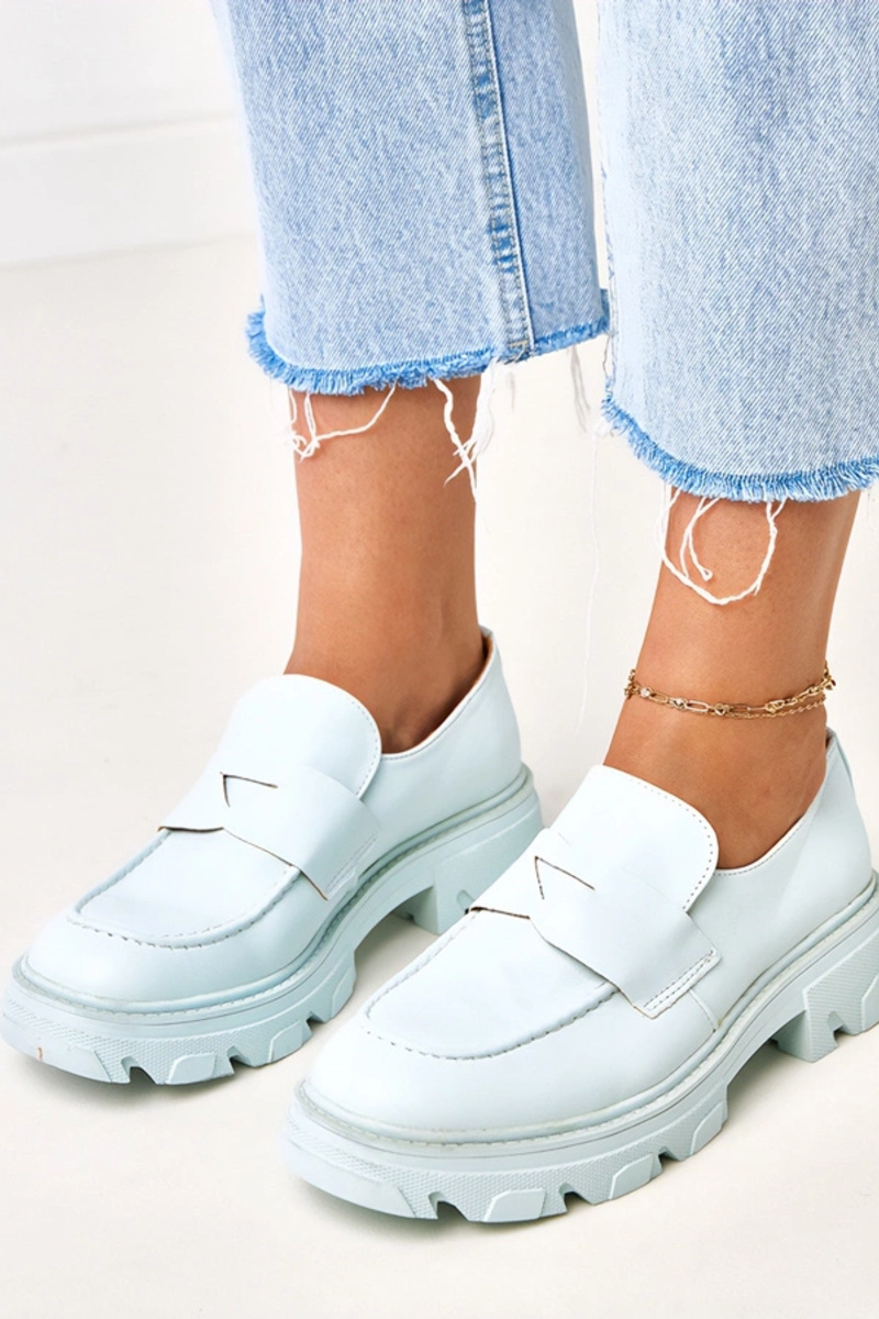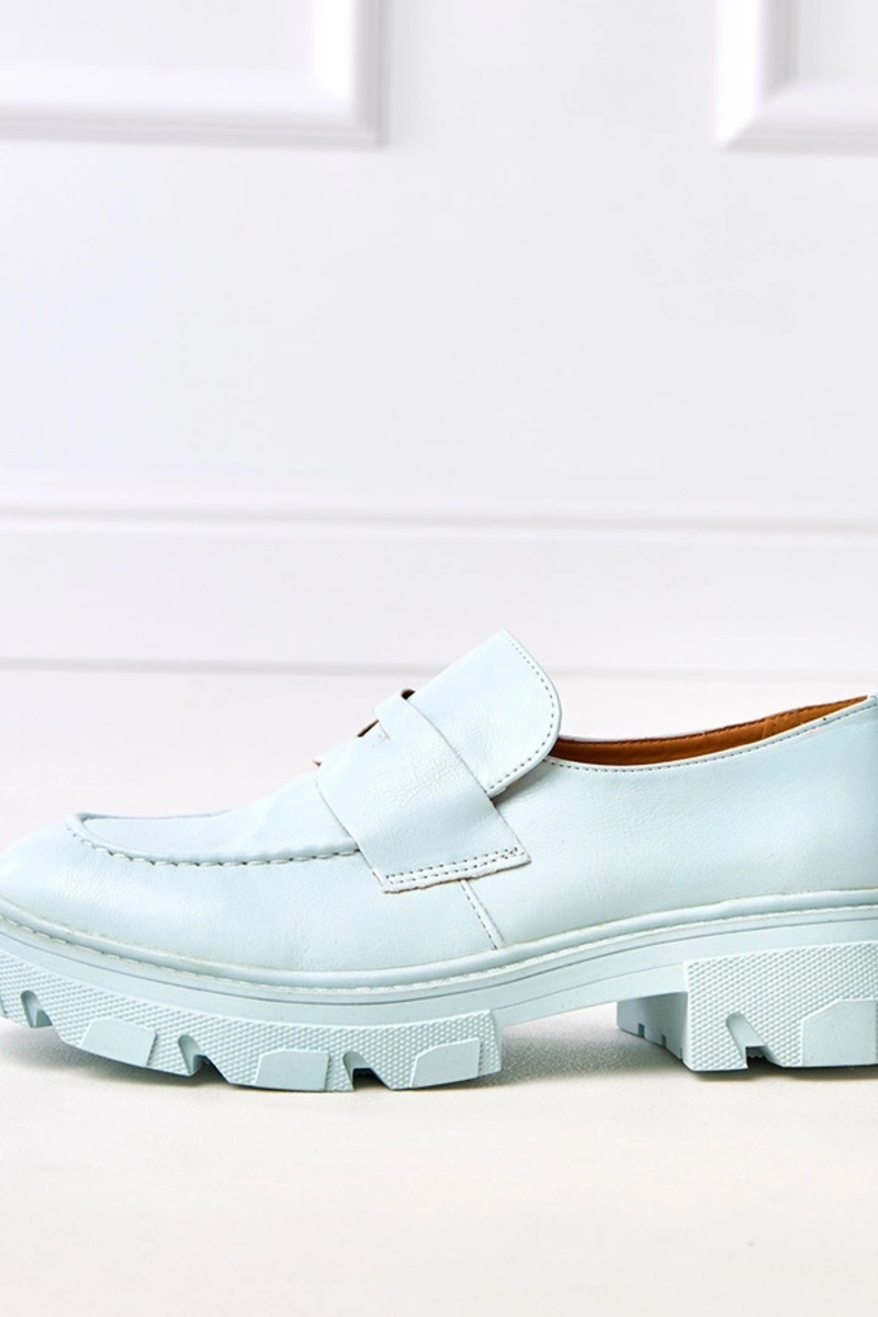 Blauwe dames moccasins van kunstleer...