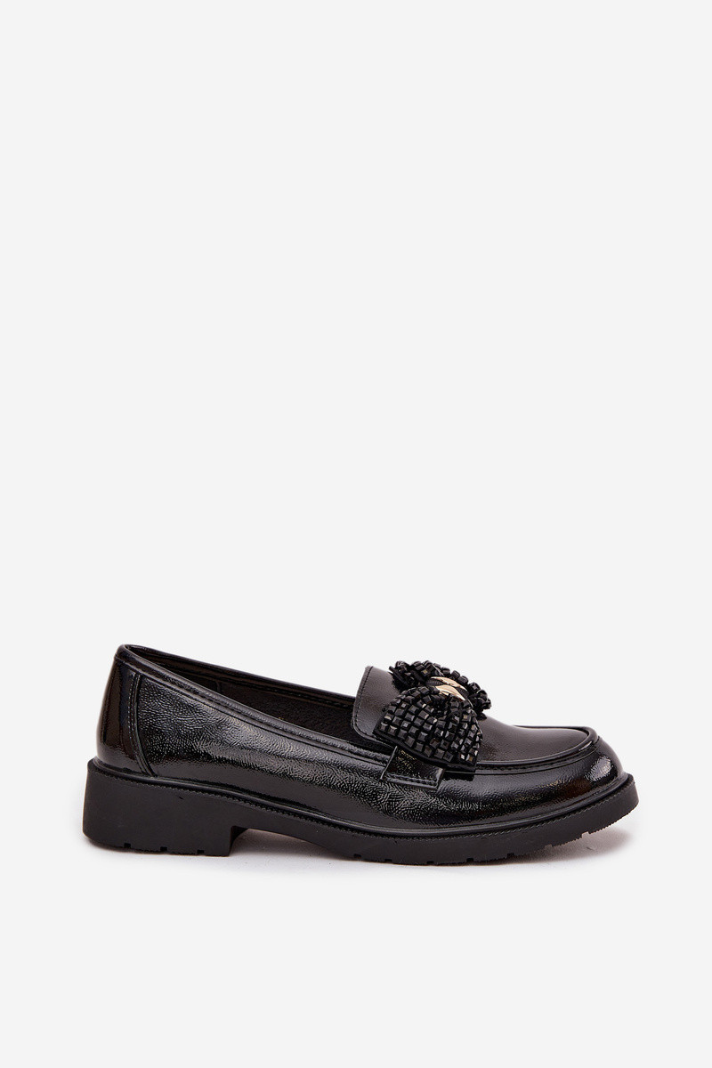 Gepolijste damesmokassins met strikken S.Barski HY52-319A in zwart