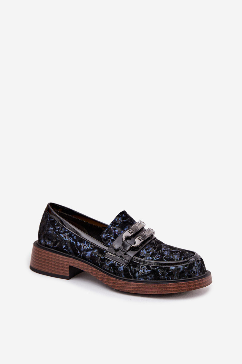 Dames mocassins van kunstsuède met versierde details D&A MR52-178 zwarte kleur