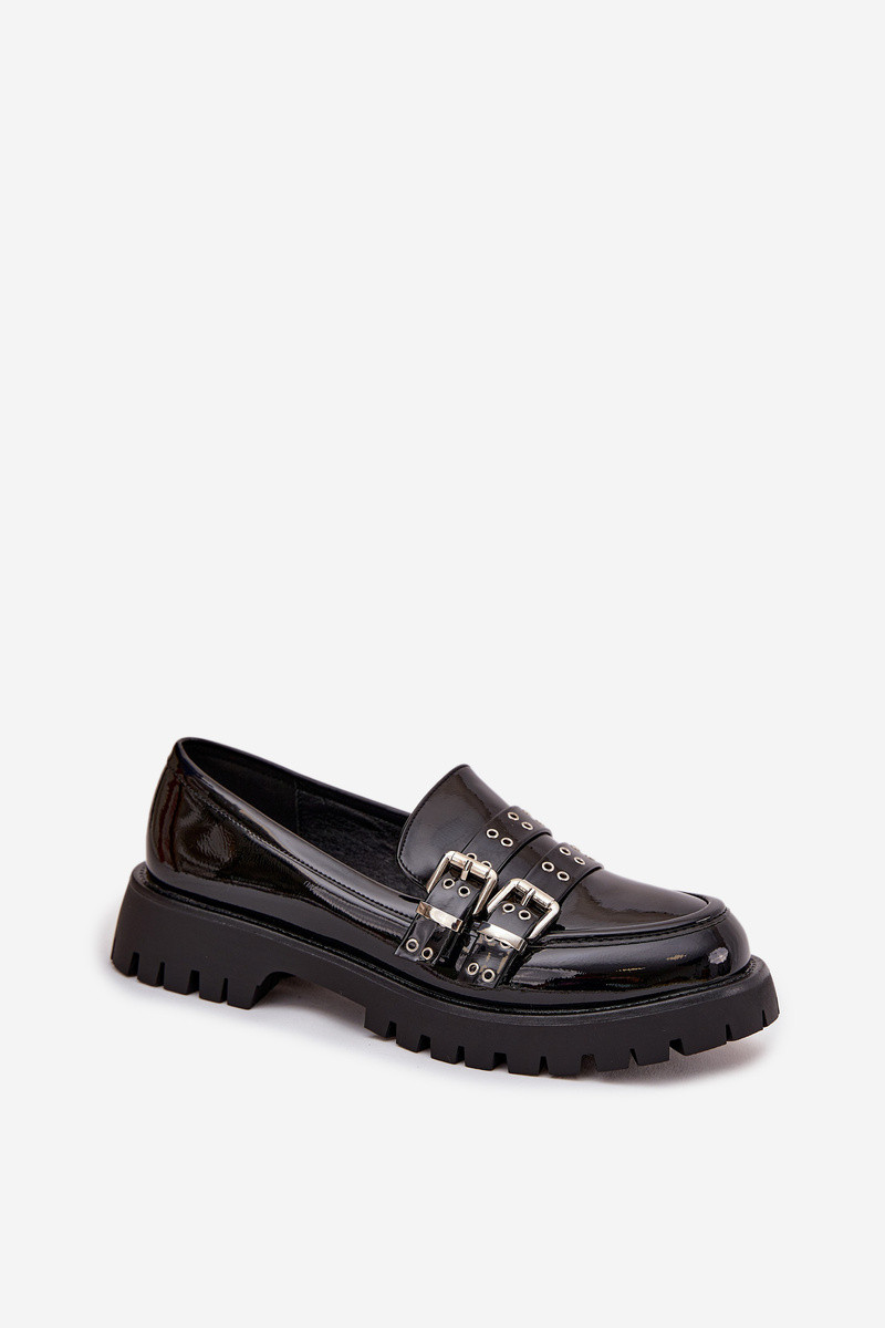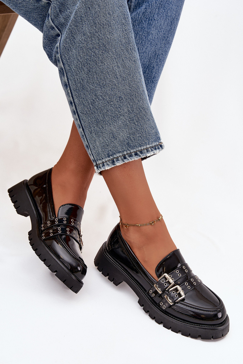 dames mocassins met lakeffect Met Strepen I zilvere kleurmi met gespenmi zInart Gabrisse