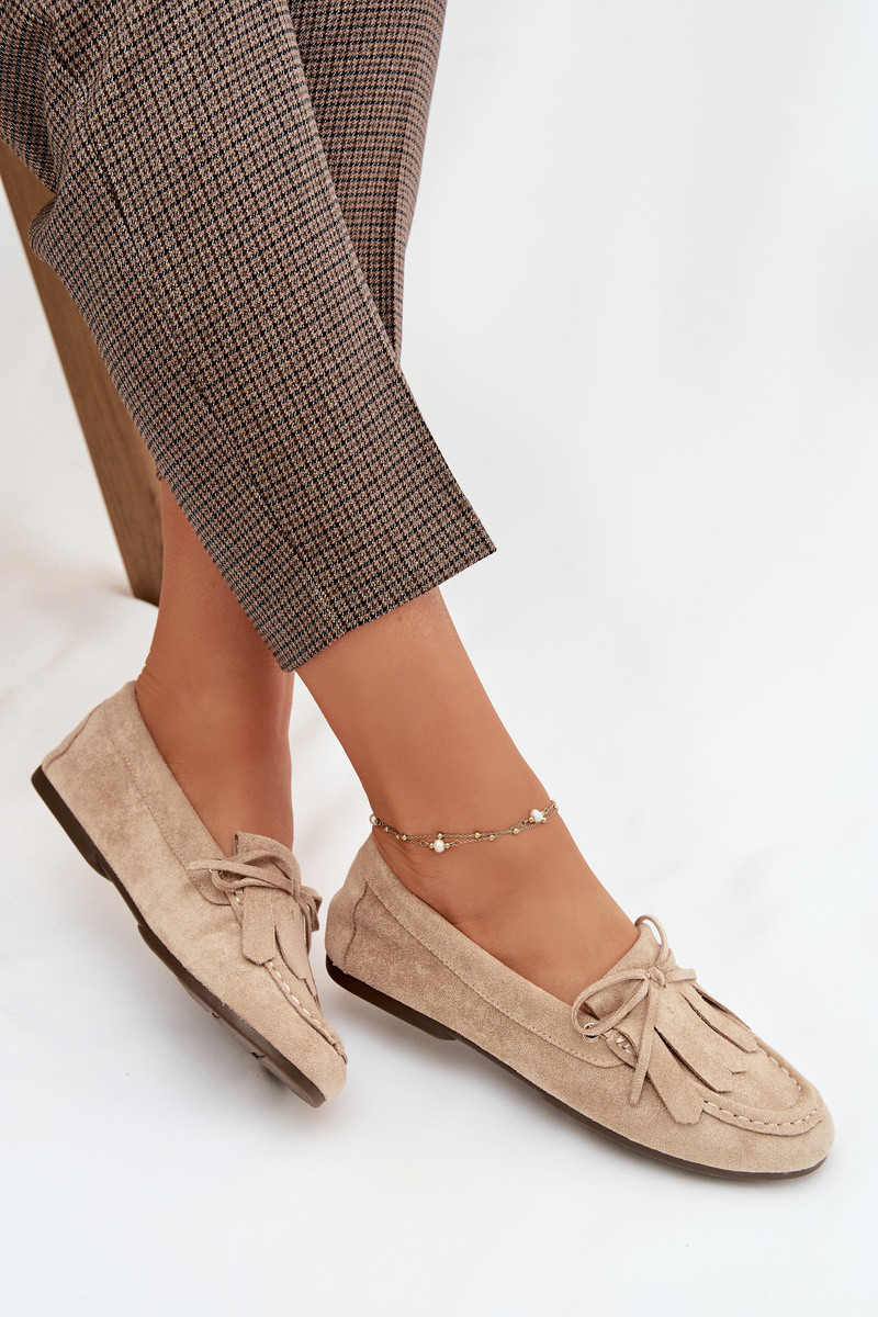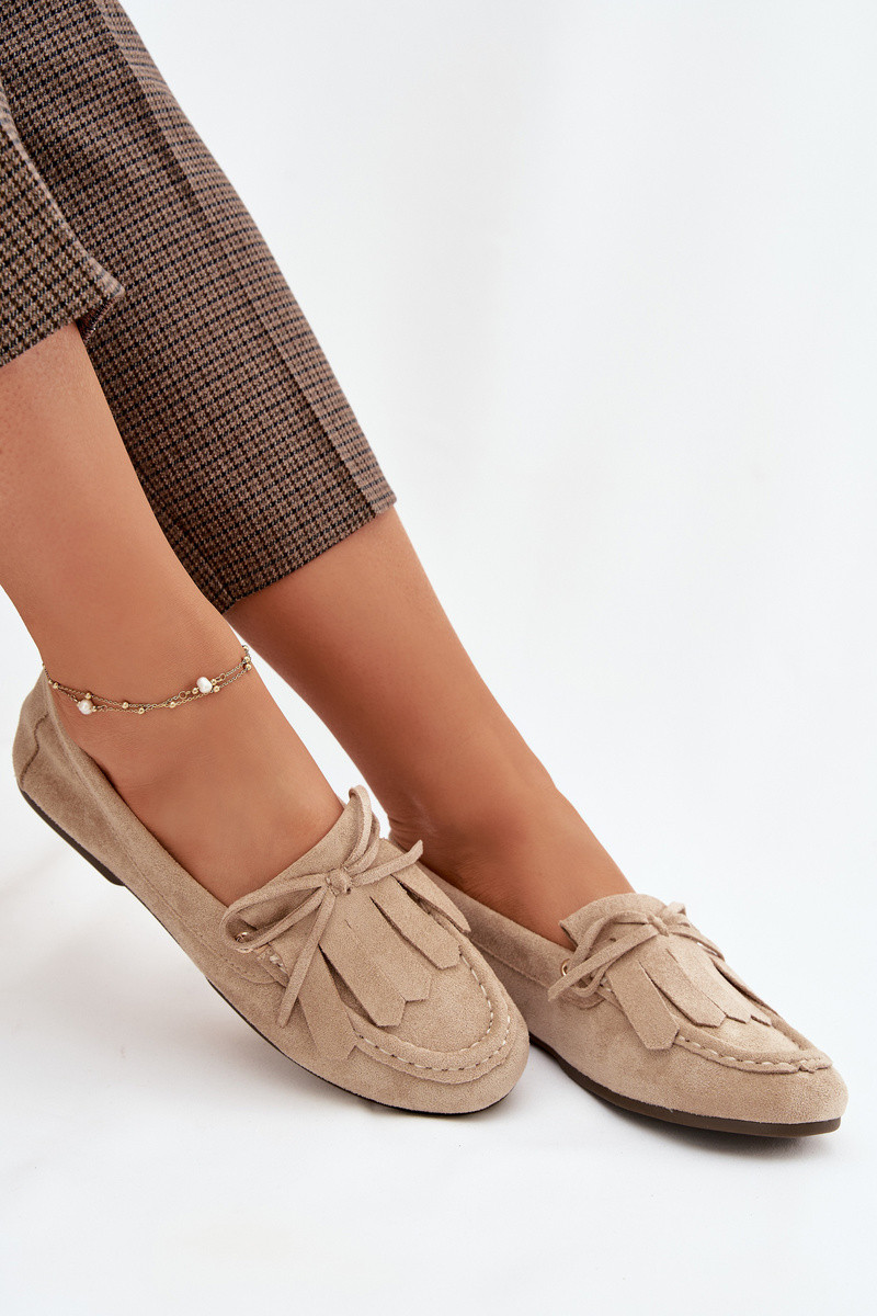 Zandkleurige Glorina dames mocassins met stijlvolle details en franjes