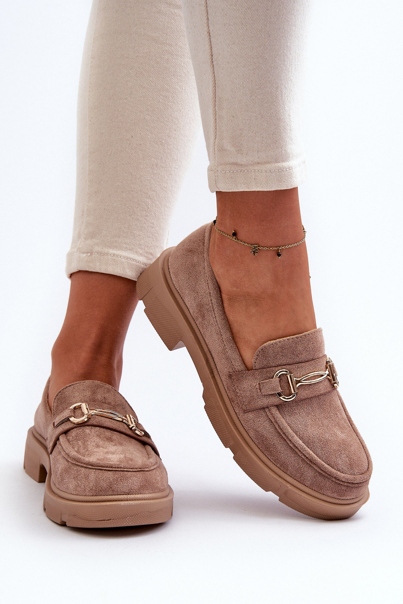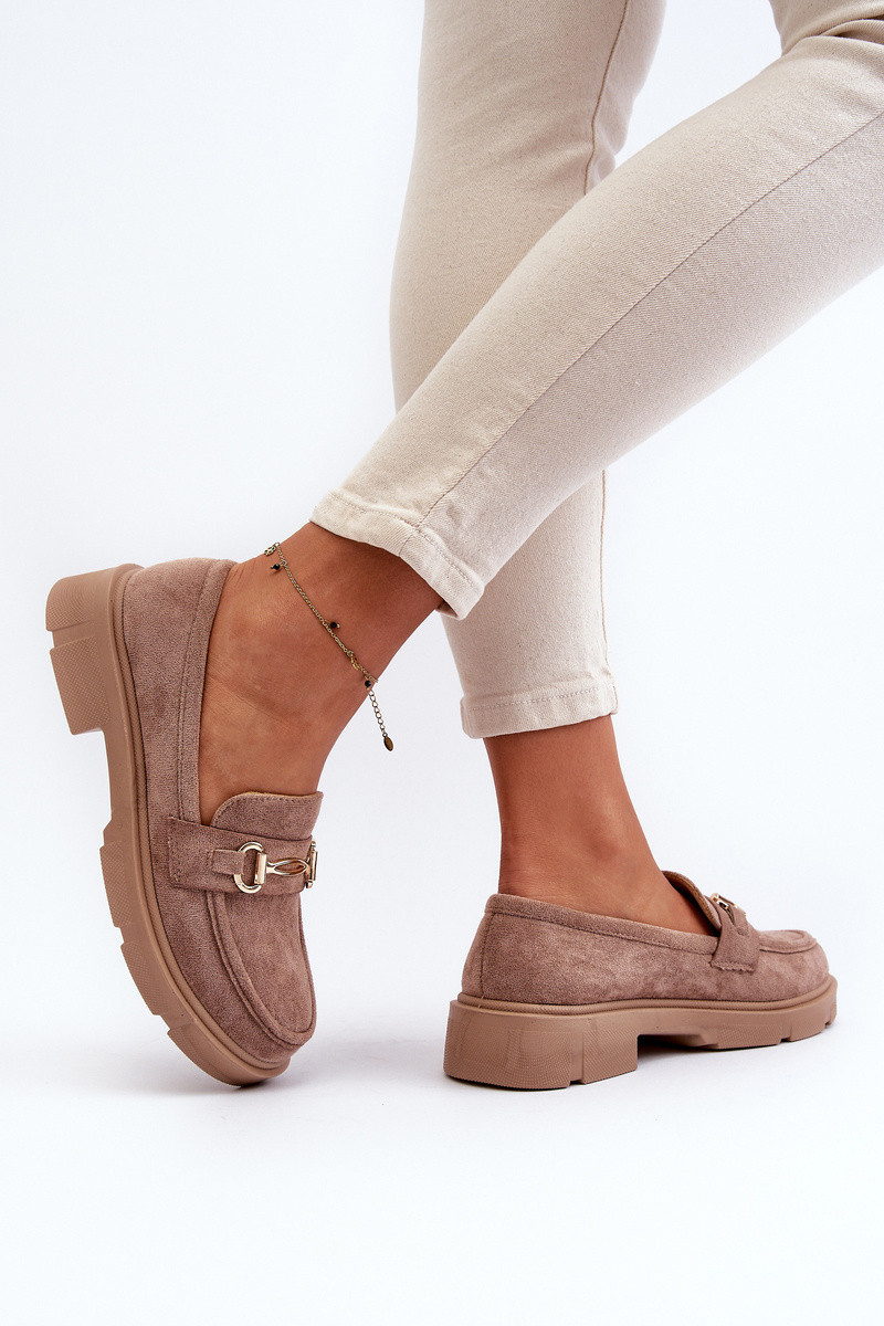 dames mocassins met gouden details van eco-suèdeoIne bruine kleur Lighas