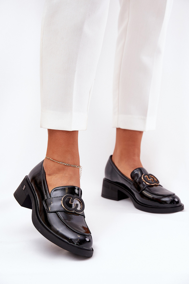 Leren lak mocassins met hakken Vinceza 18102 in zwart
