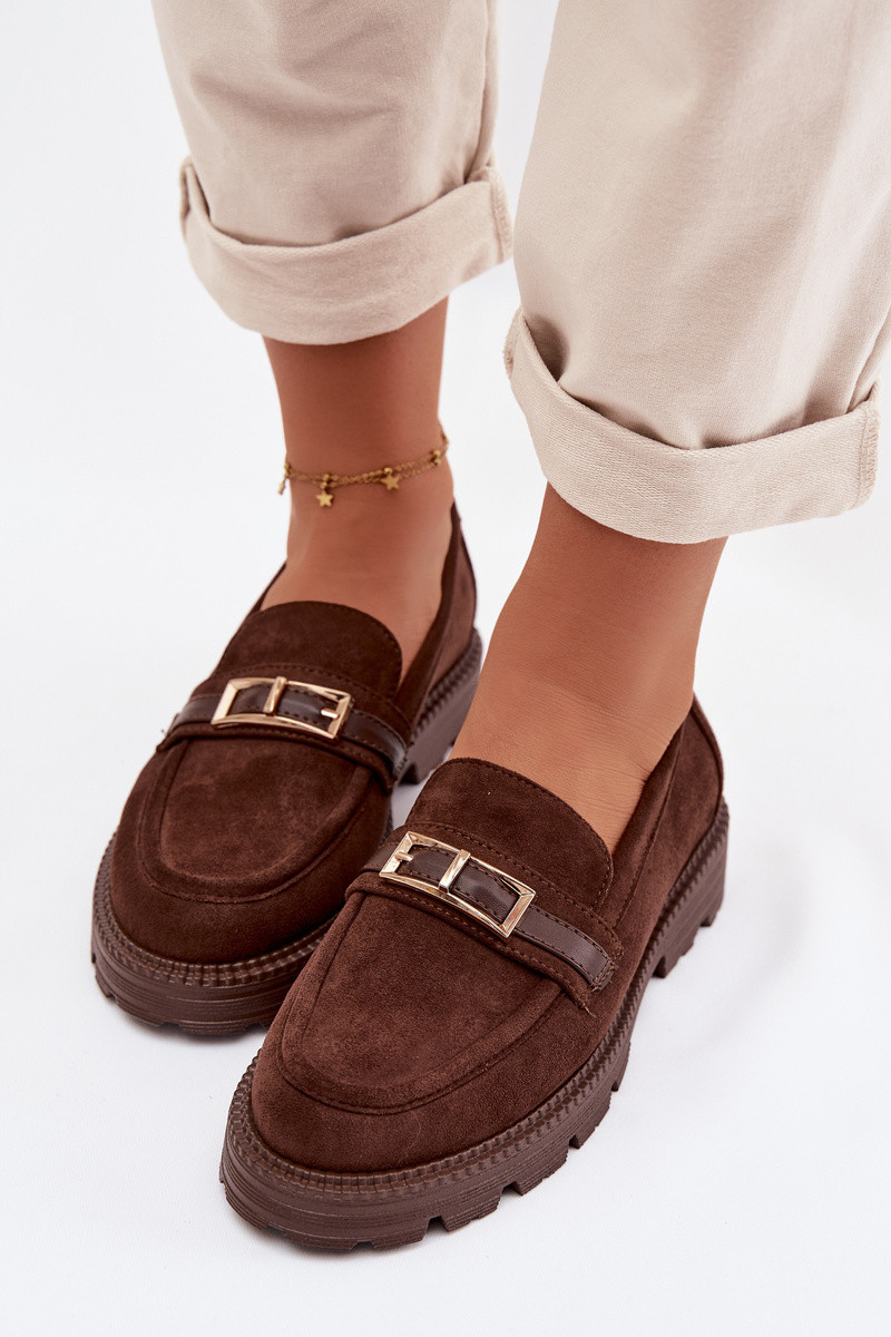 Dames mocassins met gouden gespen in chocolade kleur Mirelva