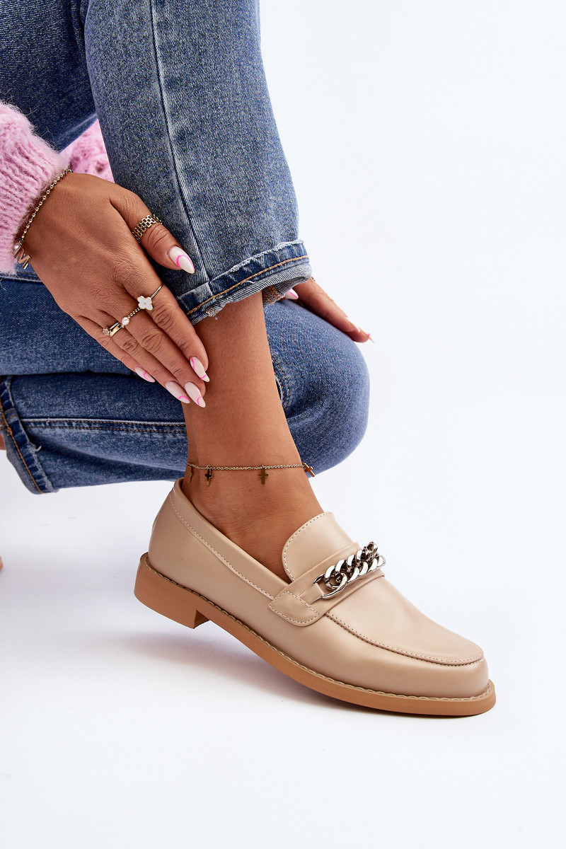 Dames Eko Leer Mocassins met kettingen beige Nohlies
