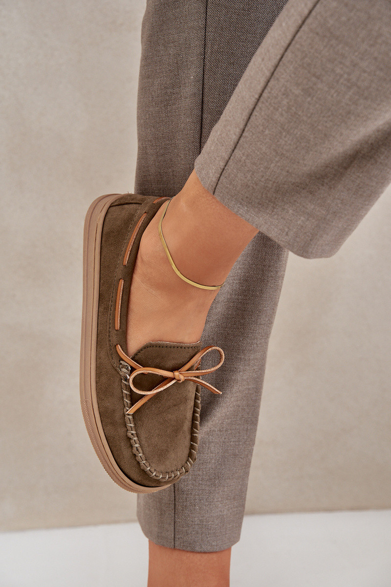 Dames mokassins Timannie op platte zool in kaki kleur