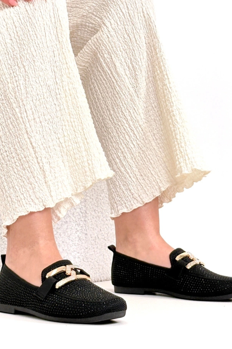 Zwarte mocassins versierd met zirconia Penelope