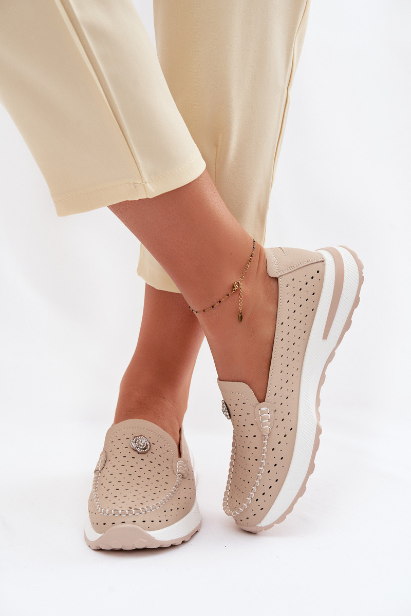 met elementen van opengeInerkt dames mocassinsOpturalnej Skóry beige Kemela