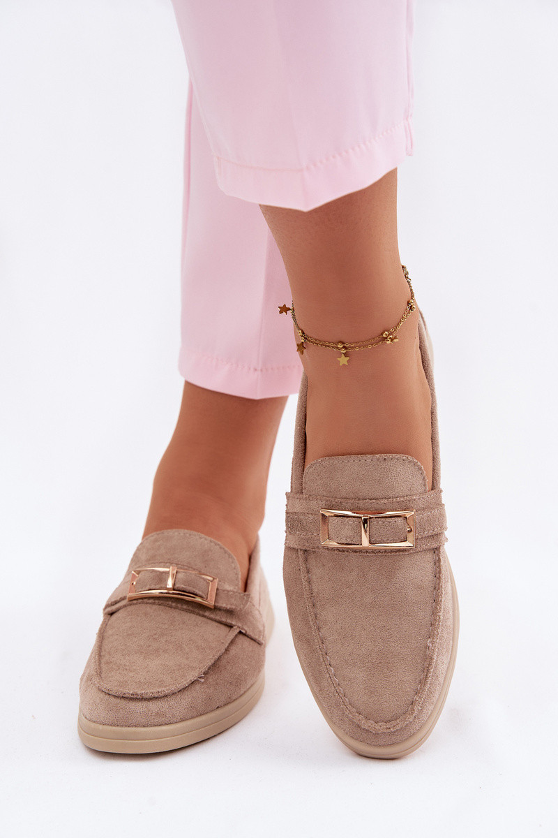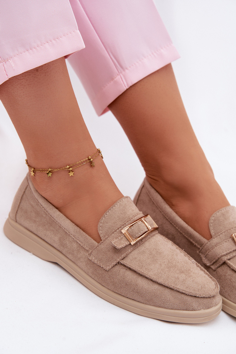 Dames mocassins met gespen in zandkleur Belinae