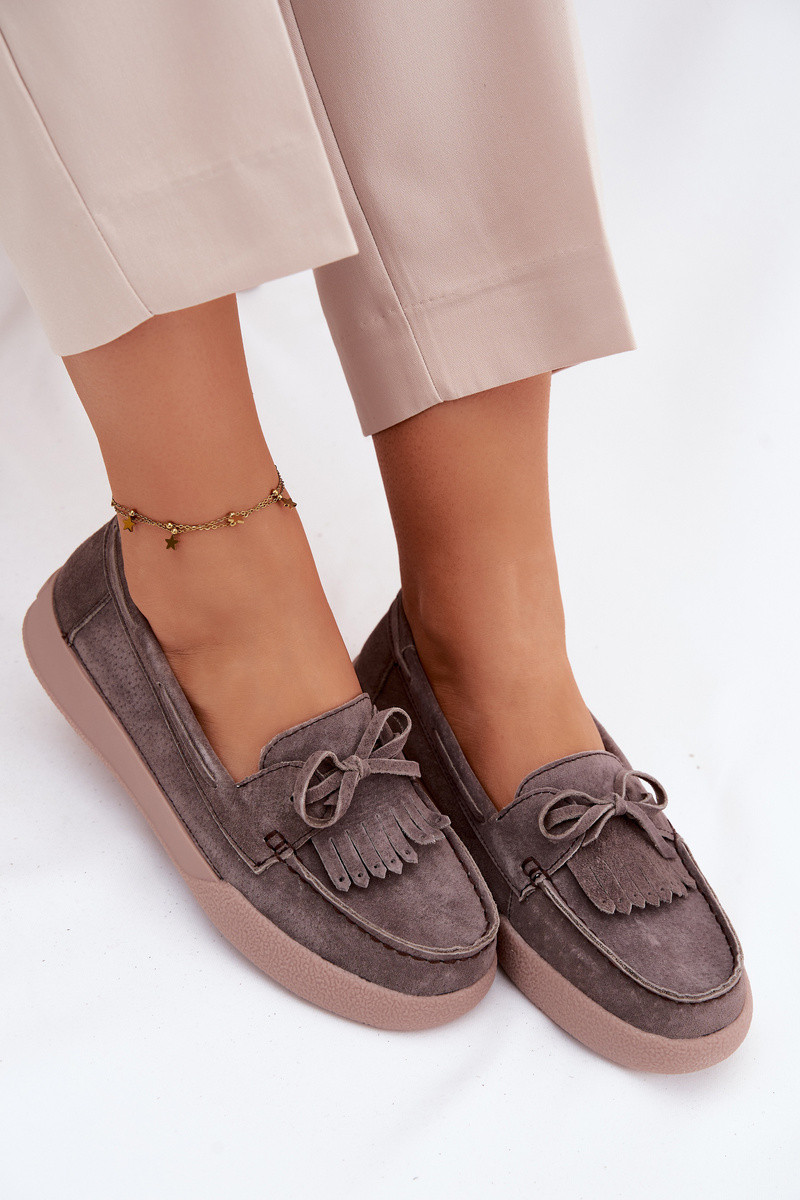 Dames suède mocassins met strikjes en franjes Vinceza 93223 in bruin