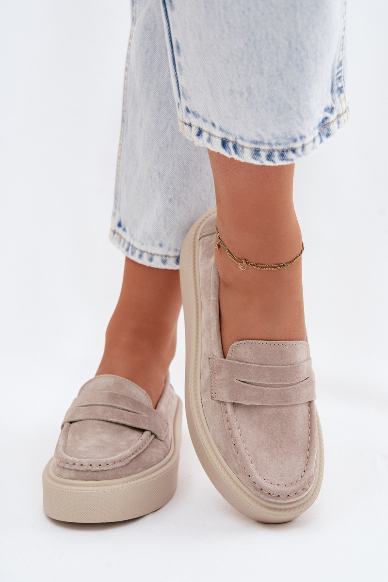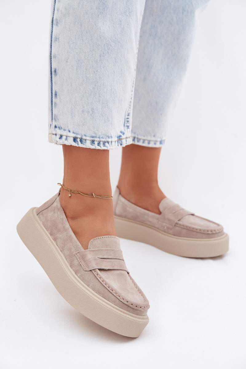 Zandkleurige faux suede platform mocassins Vinceza 79594