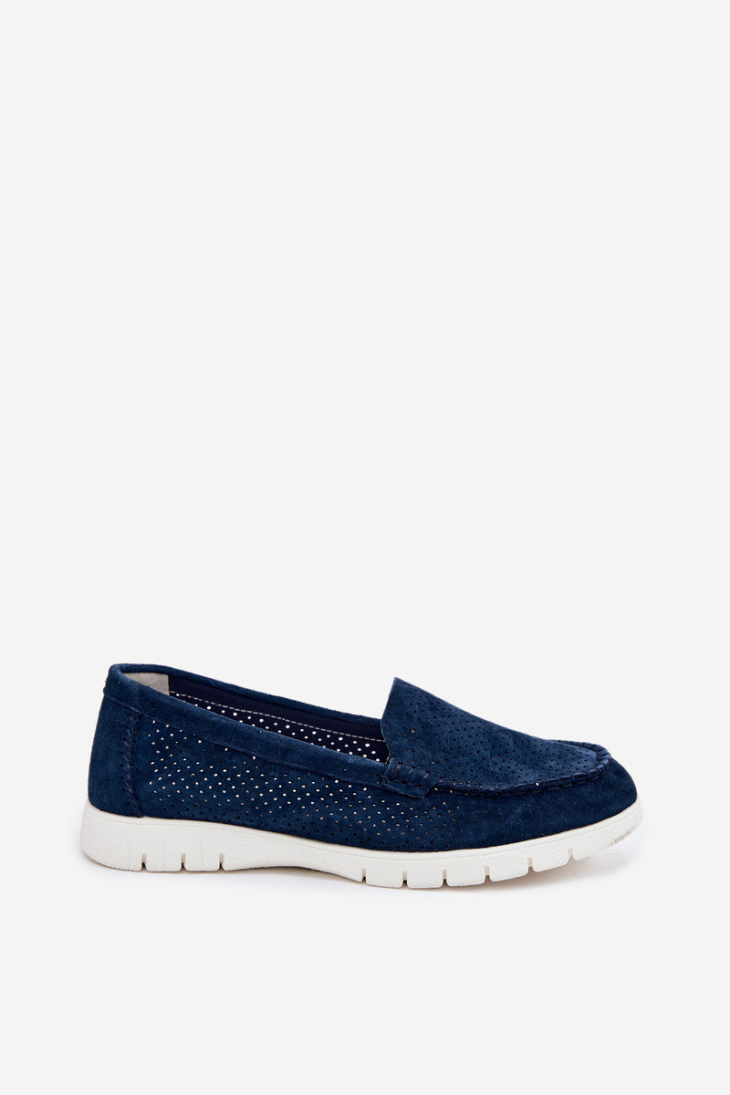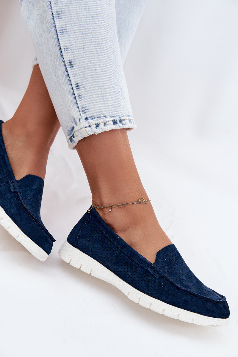 Donkerblauwe faux suede dames mocassins Vinceza 95360