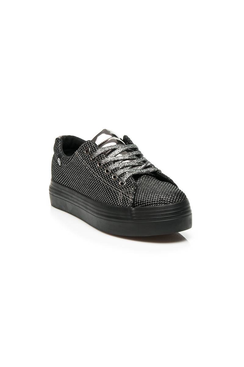 Exclusieve glanzende zwarte en zilveren schoenen met dikke zolen AB-37S  - 1