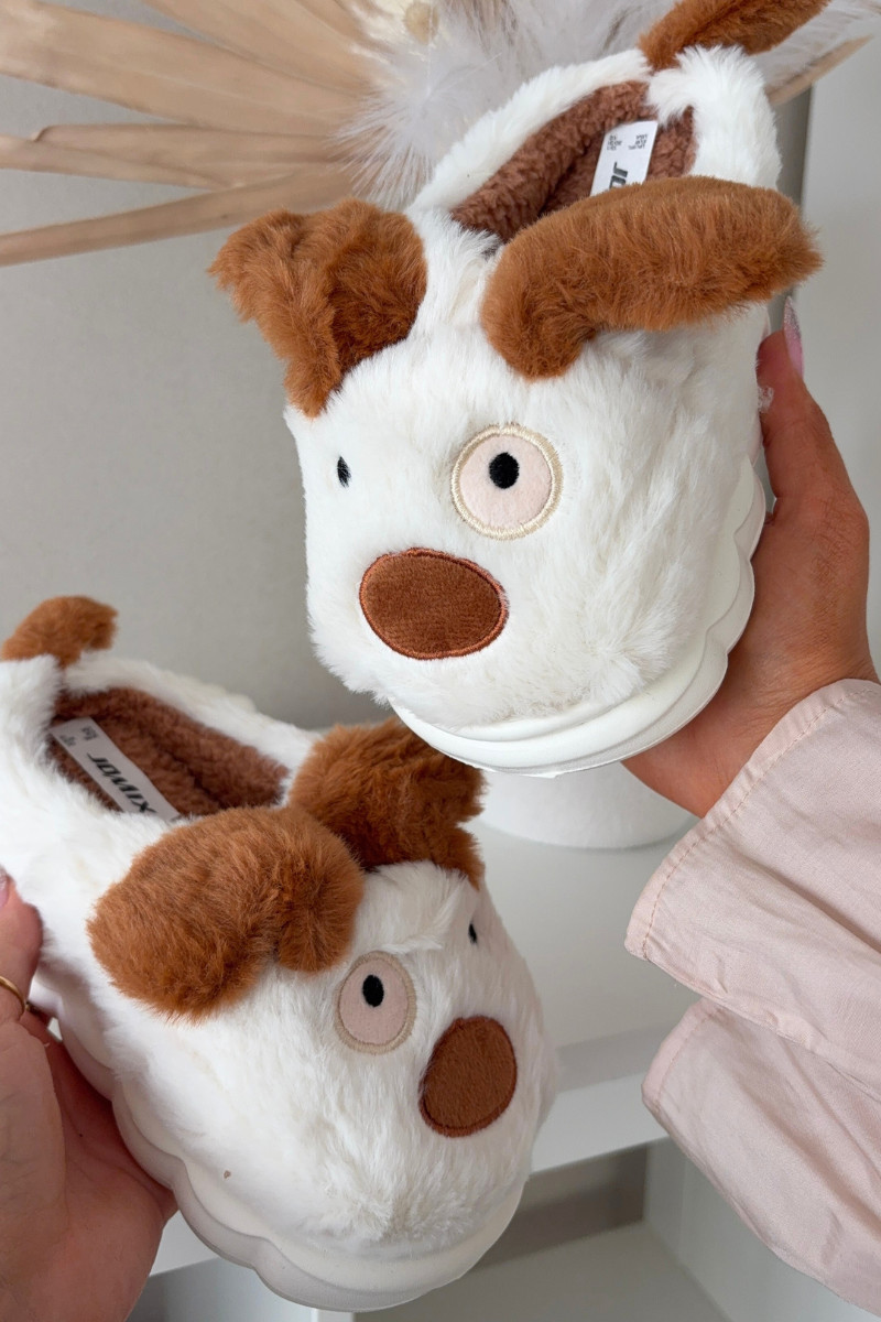 Bruine kinder slippers met bont "Hondjes" Farnise