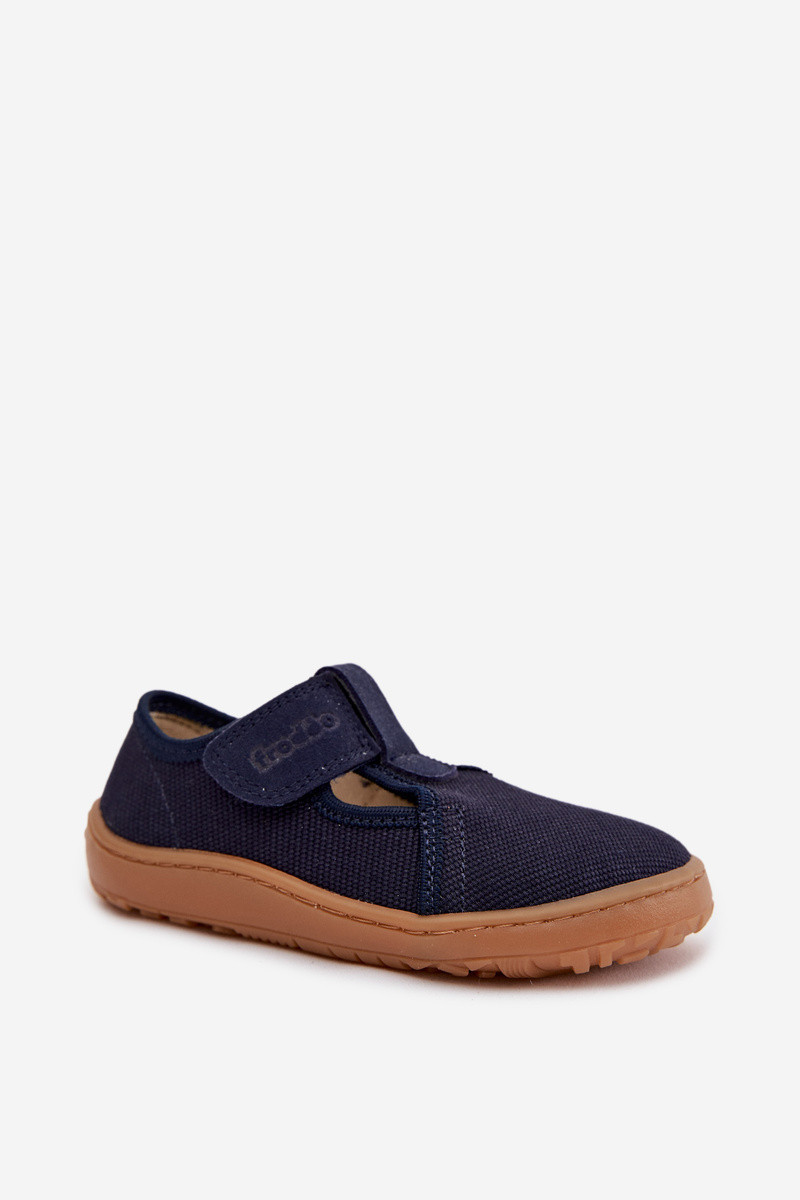 Kinderpantoffels met klittenbandsluitingen Barefoot Froddo Canvas G1700439 donkerblauwe kleur