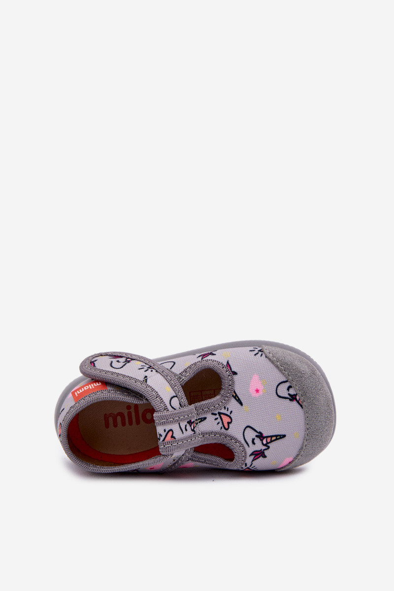Slippers Milami Kinderen Elastyczne met zelfklevende bevestigingsmiddelen Eenhoornsc grijs Ambette