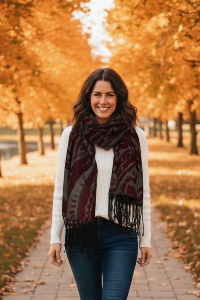 Grijs-bordeaux sjaal met bloemen Colonie
