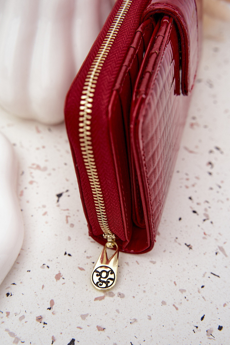 Gelakte damesportemonnee met reliëf en gouden details rode kleur Evlinne