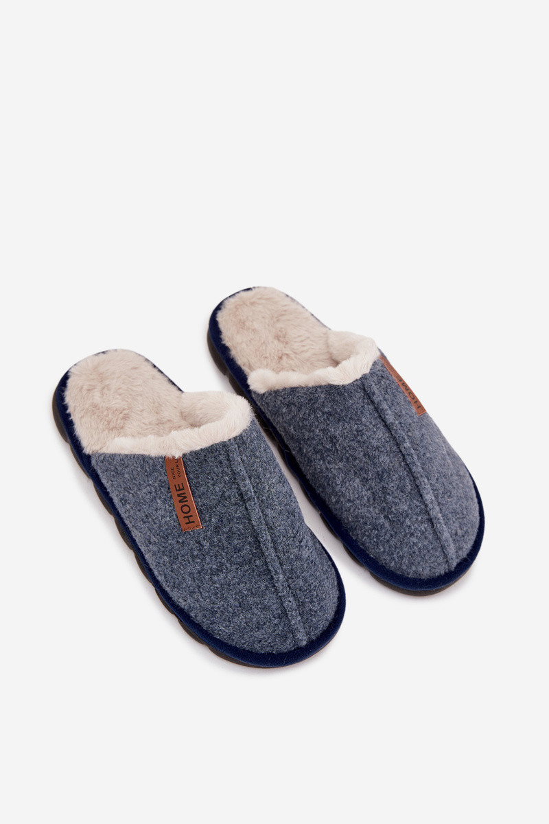 Heren verwarmde slippers met binnenvoering van bont donkerblauw Darielle