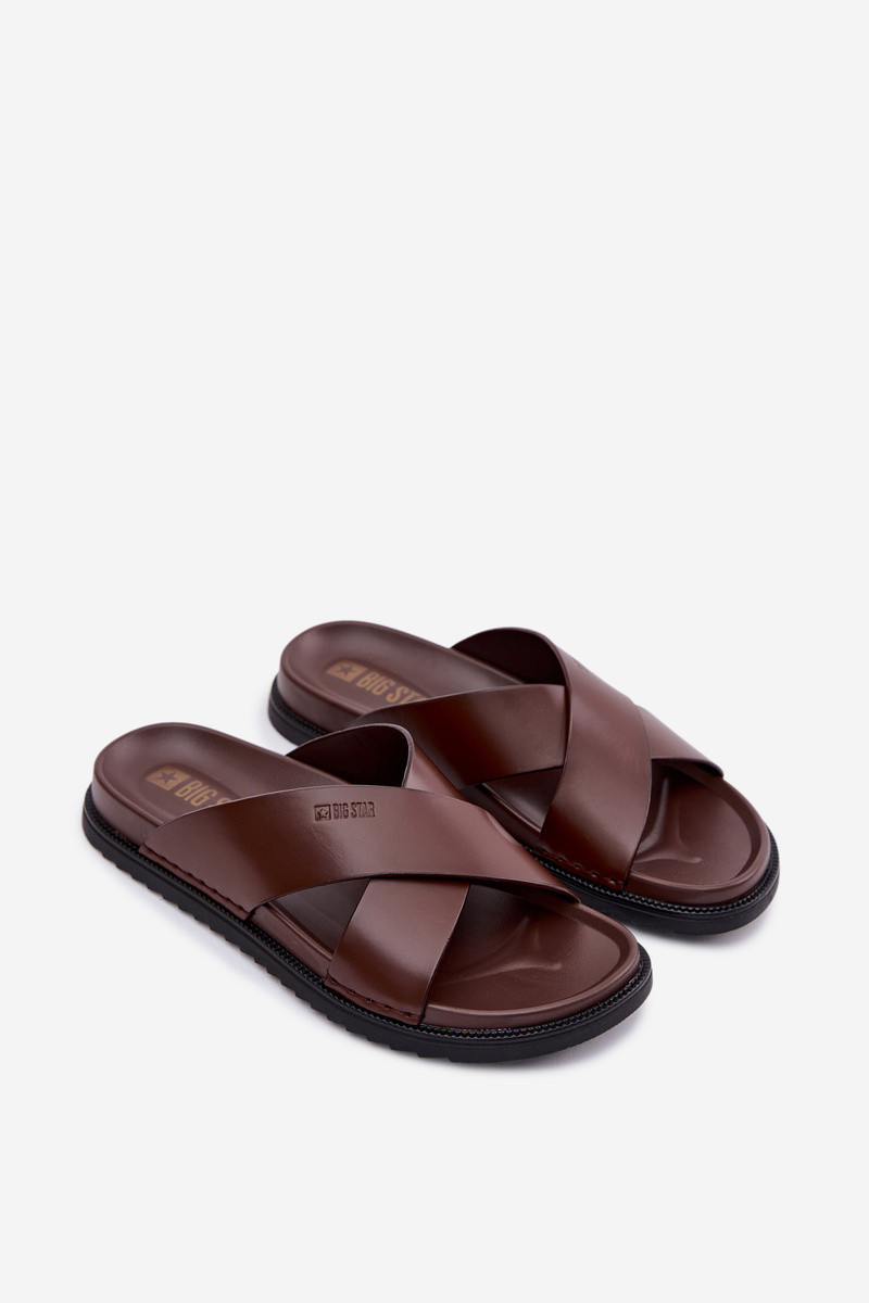 Leren pantoffels voor mannen Big Star TT174218 donker bruin
