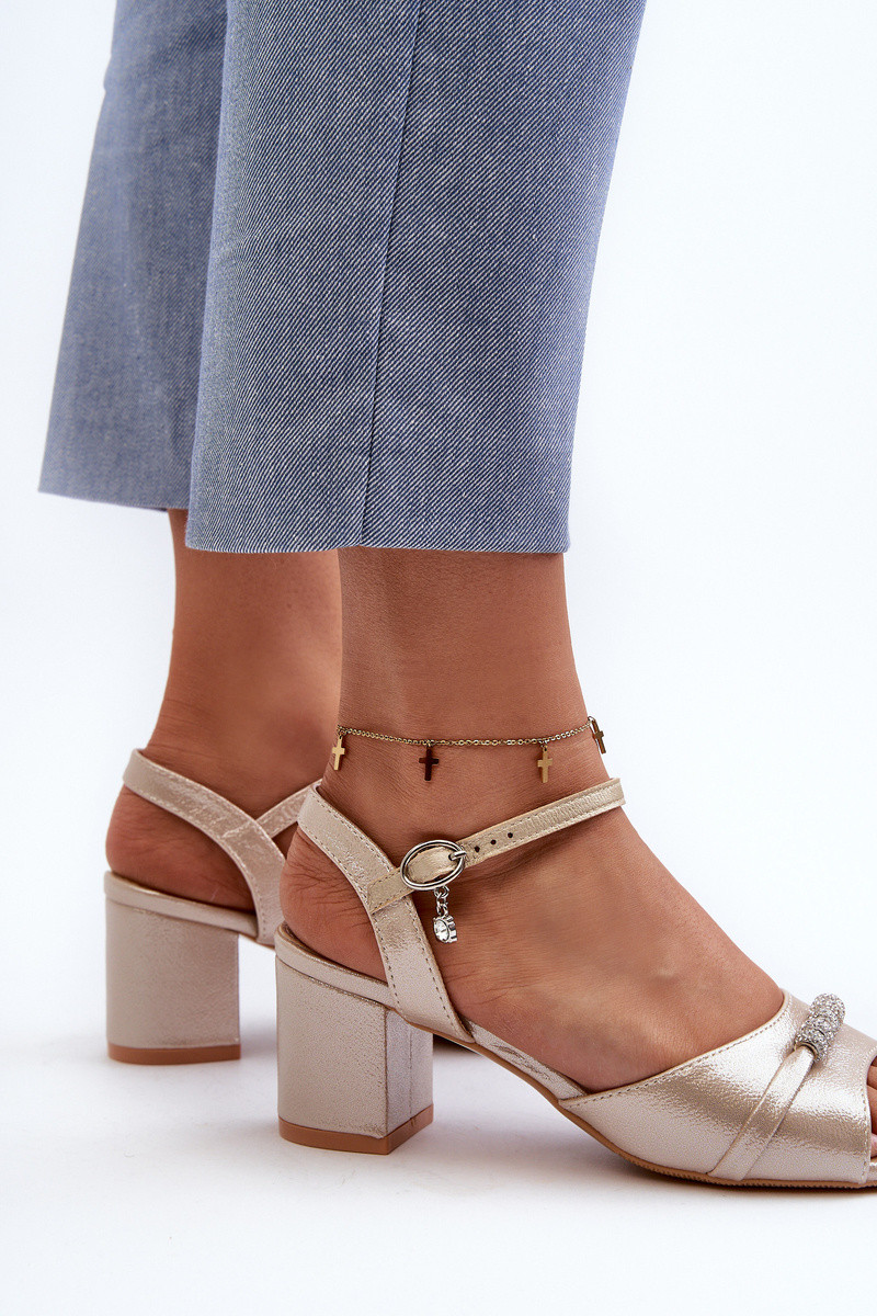 Dames sandalen van kunstleer met hakken en mooie details gouden kleur Narhi