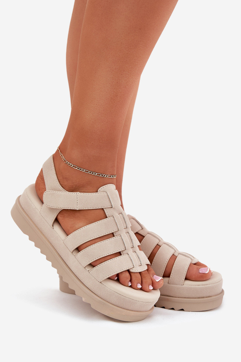 Zandkleurige dames schoenen met plateau van kunstsuède, „Filisenia"