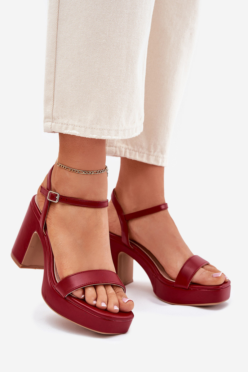 Dames sandalen van kunstleer met hakken Lillita bordeaux kleur