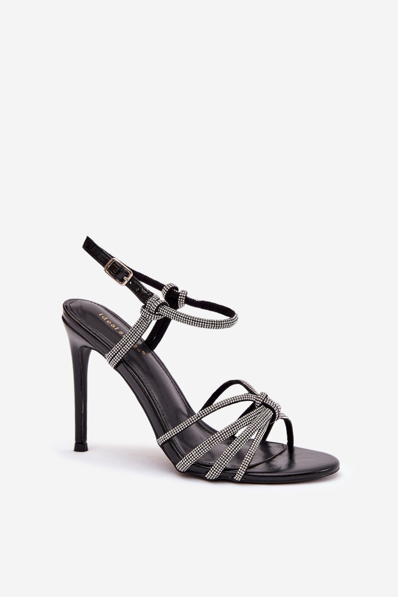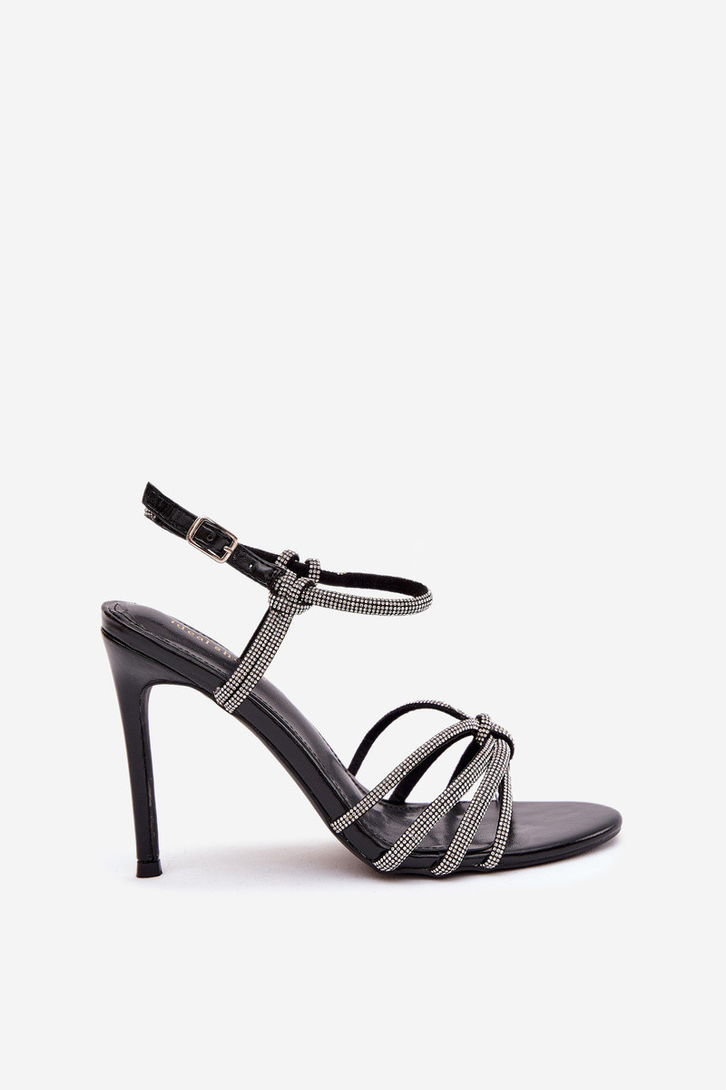 Zwarte dames sandalen met dunne hakken, bandjes en zirconia Tanelle