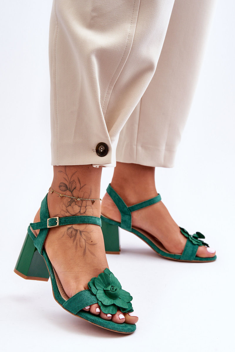 Suède sandalen met bloem S.Barski 04 groene kleur