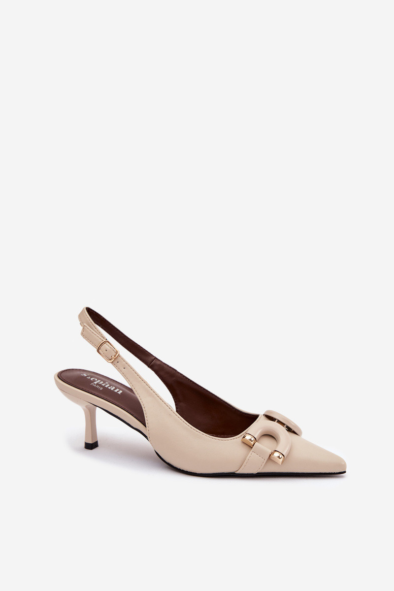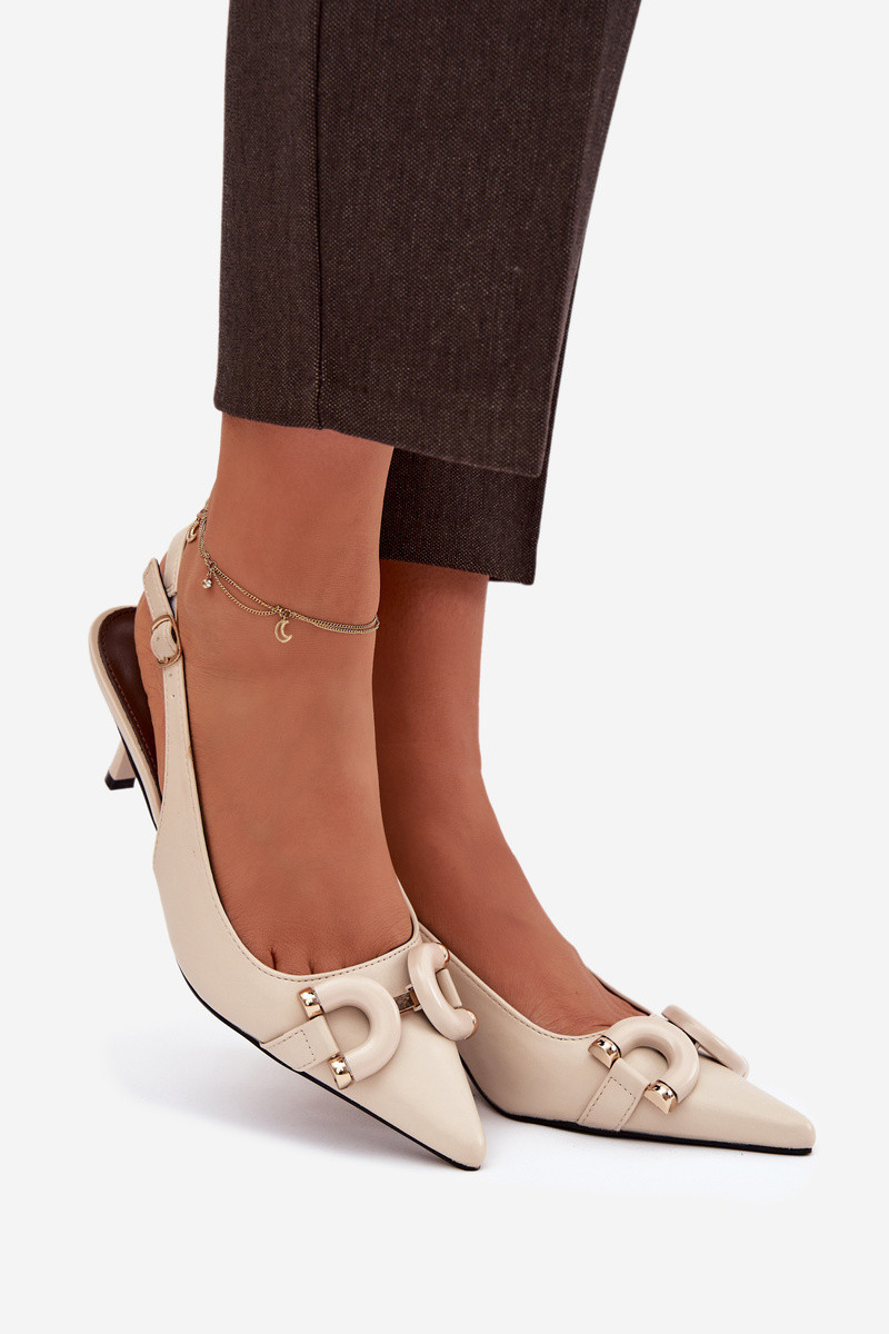 Dames sandaaltjes met dunne hakjes en decoratieve details, ivoorkleurig Brienne