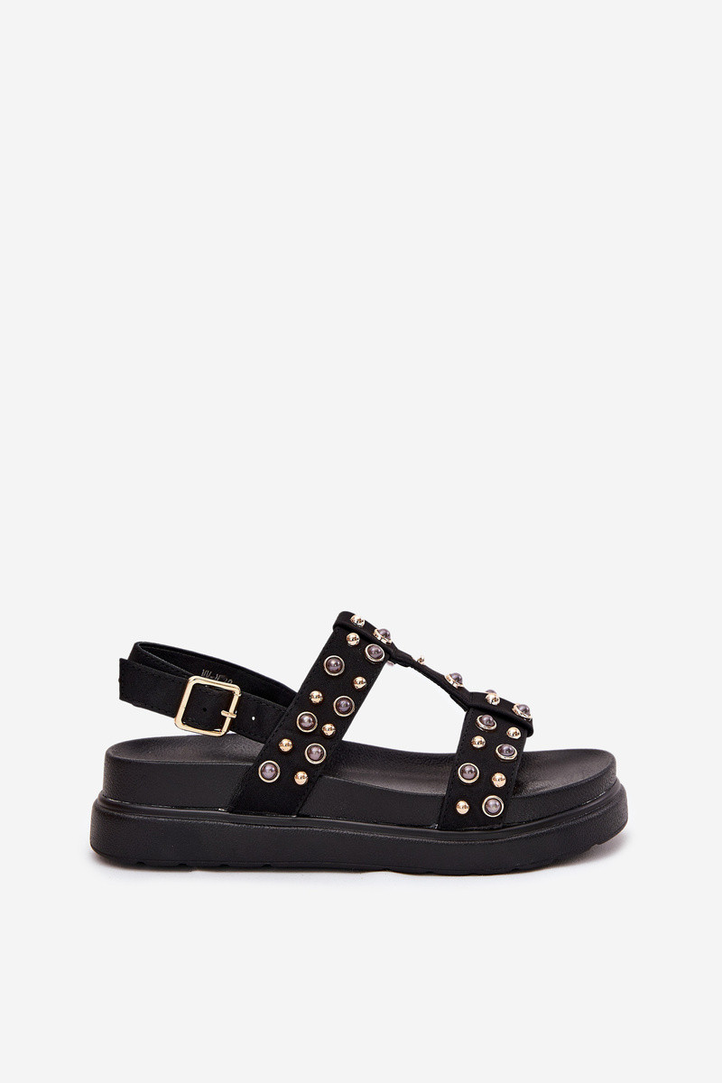 Tai turillisa zwarte dames sandalen met platform en decoraties
