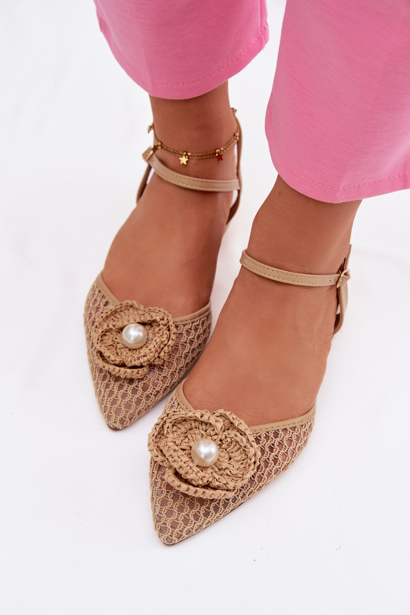 Dames sandalen met hak en versieringen, zandkleur Vionessa
