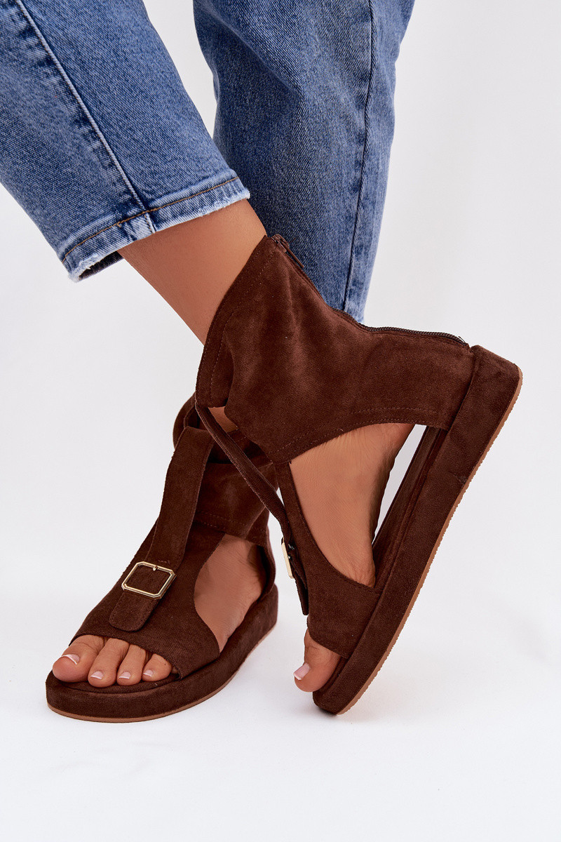 Dames chocolade kleurige sandaaltjes met enkelband Coralya
