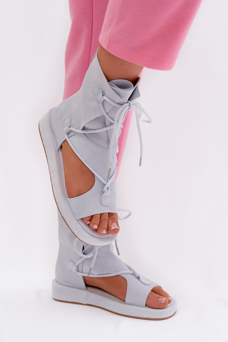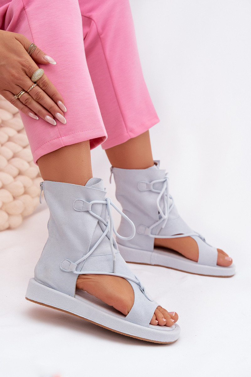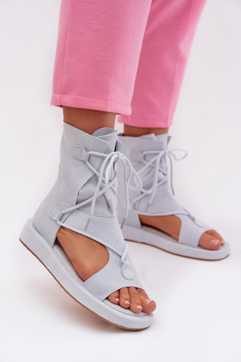 Dames gladiatorsandalen van kunstsuède met schacht en veters in lichtblauwe kleur Ferlisse