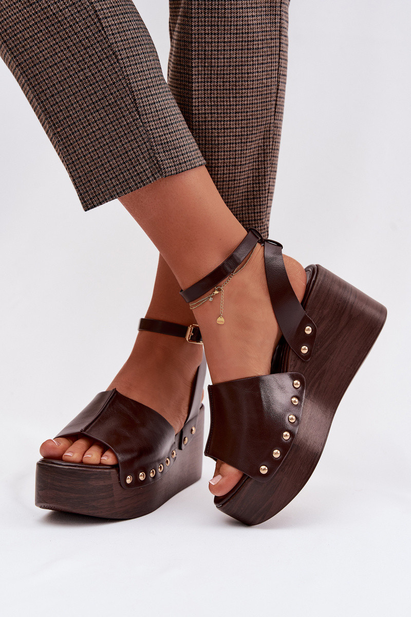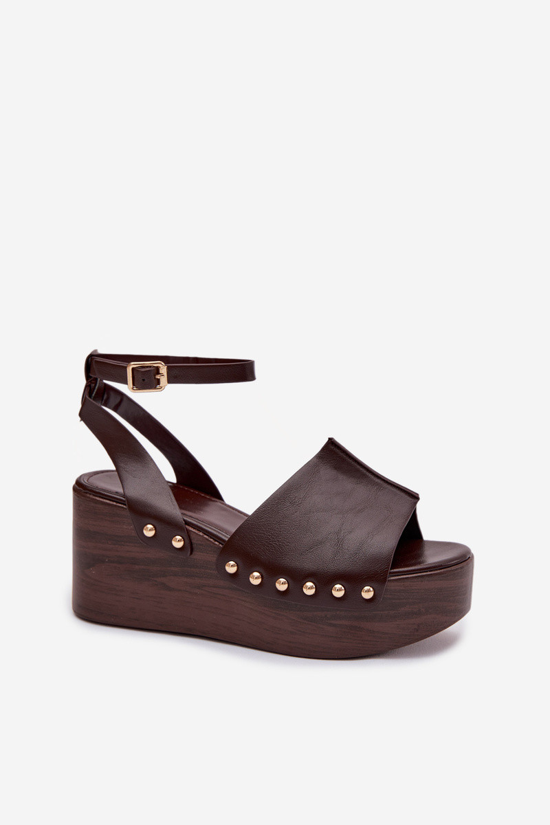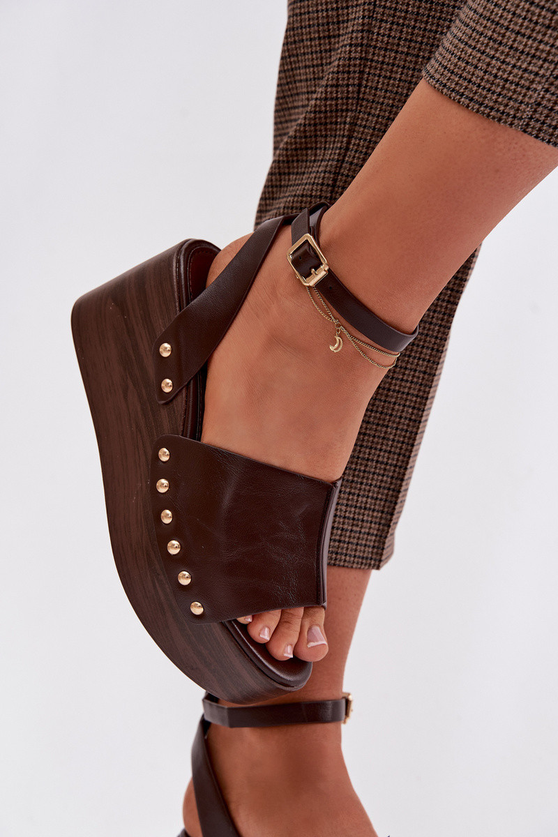 Dames sandalen op platform met gouden spijkers in chocolade kleur Galorina