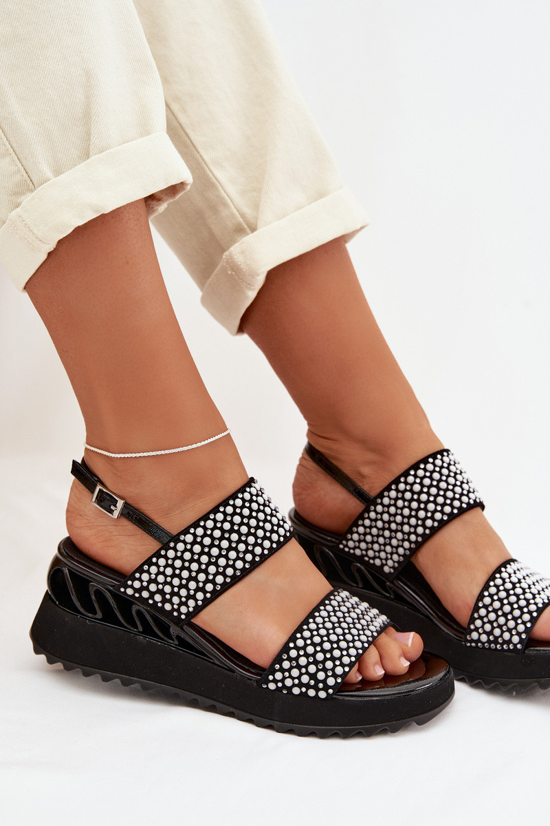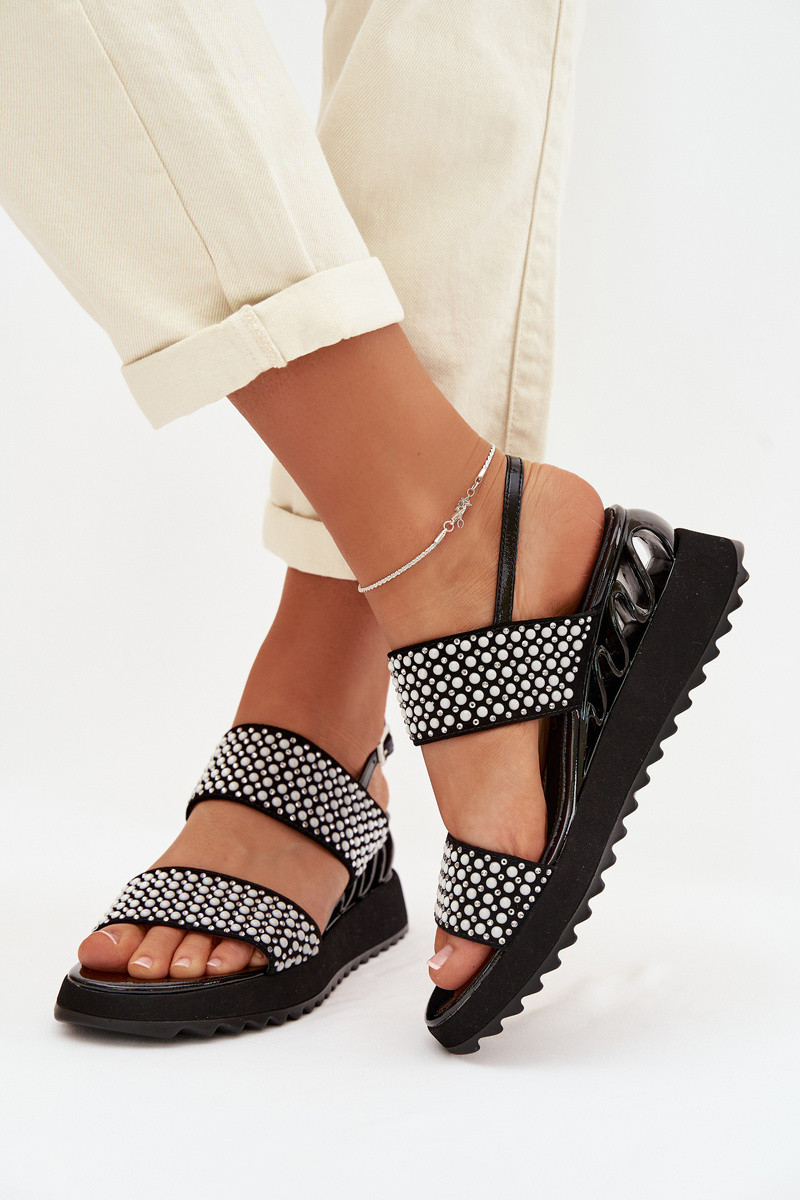 Leren suede sandalen met decoratie D&A CR61-3067 in zwarte kleur