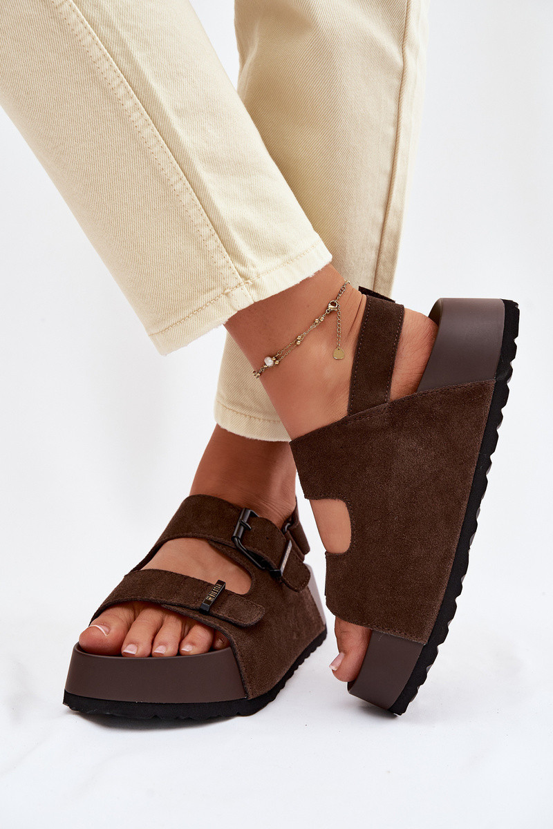 Suède sandalen met platform Big Star TT274236 chocolade kleur