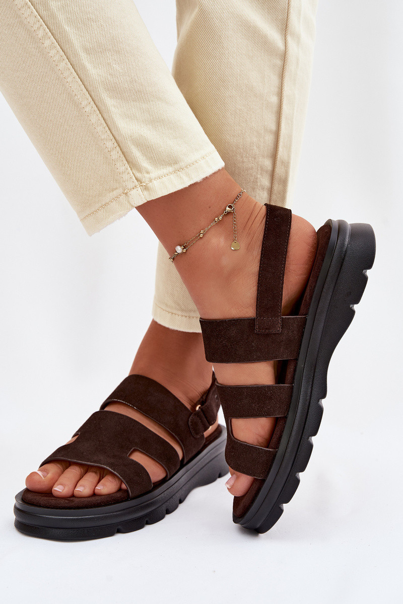 Dames suède sandalen Big Star TT274483 chocolade kleur