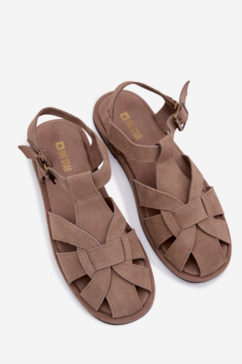 Plat suède sandalen voor dames Big Star TT274250 zandkleur