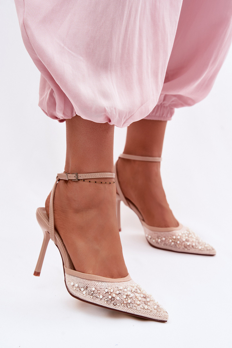 Dames sandalen met dunne hakken Versierd met pailletten I koraal kleurenikami beige Nedira