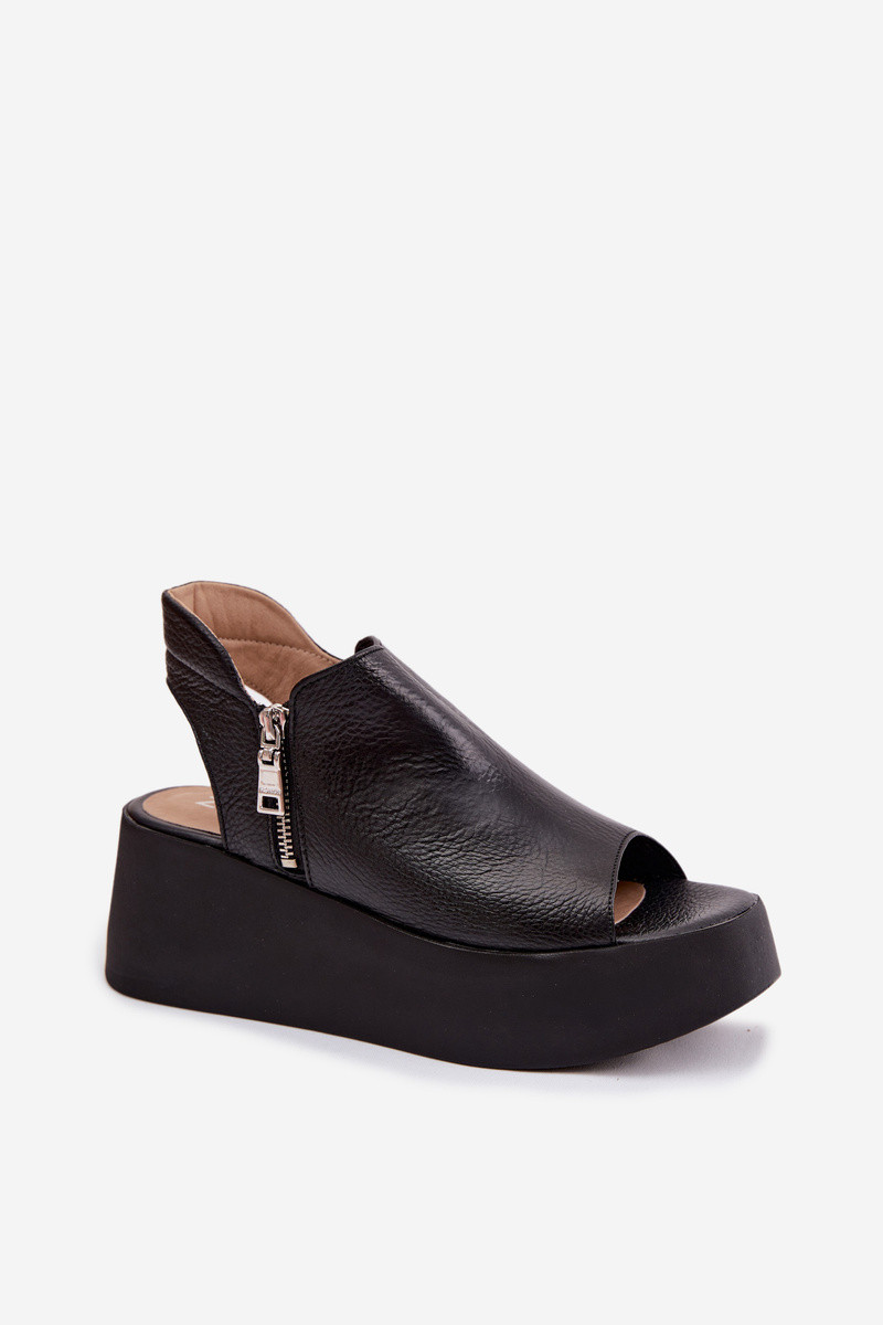 Leren platform sandalen Zazoo 1792 zwarte kleur